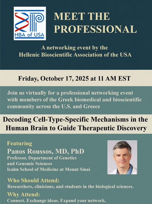 • Ο Δρ. Ρούσσος θα μοιραστεί επίσης την εμπνευσμένη πορεία του — από τα πρώτα του βήματα στην Ελλάδα έως την ηγεσία ενός επιστημονικού κέντρου νευρογενετικής στη Νέα Υόρκη — αναδεικνύοντας σημαντικά διδάγματα στην επιστήμη, τη συνεργασία και mentoring.